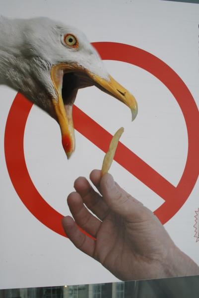 Wél aanval van boorden met vermelding van het verbod meeuwen te voederen,anders,250 euro armer voor de badgast....(2 bovenste beelden)
