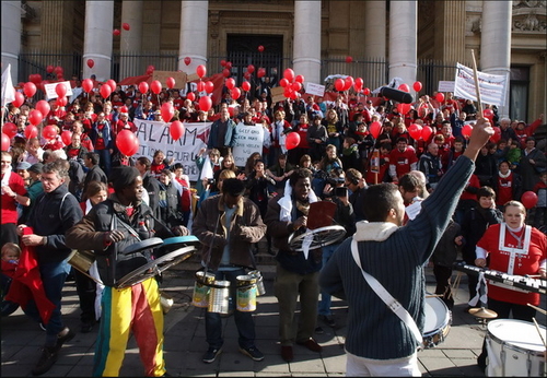 Op 17 oktober kwamen verenigingen waar armen het woord nemen van over heel België, en hun bondgenoten, op straat. Om 14u stapten ze van het Sint-Katelijneplein naar de Beurs voor het optrekken van de uitkeringen en de laagste lonen. Niet ontdaan van hun gevoel voor humor droegen velen een t-shirt dat kortere maanden eist want een gezegde onder mensen in armoede luidt dan ook "heb jij op het eind van je pre ook nog zoveel maand over?". Op het Sint-Katelijneplein namen mensen in armoede het woord en er waren tal van optredens. Enkele sfeerbeelden.