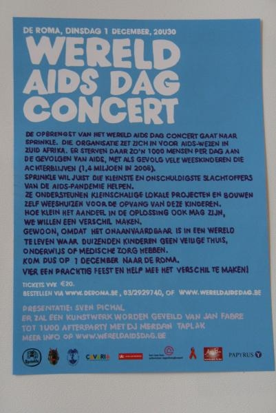 Naar aanleiding van Wereld Aids Dag wordt op dinsdag 1 december 2009 in Antwerpen een groot benefietconcert georganiseerd.