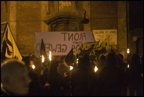 Het N-SA (Nationaal-Solidaristisch Alternatief) is een extreemrechtse organisatie die de laatste weken wat in de media kwam naar aanleiding van een reportage in Koppen over hun congres. Daar kwamen enkele tientallen neonazi’s samen om te luisteren naar nazistische optredens en speeches die o.a. opriepen tot een blank europa en jodenhaat. Deze optocht richtte zich "tegen zinloos geweld". Ze beweren dat hun extreem-rechtse kameraden in Gent de laatste tijd dikwijls te lijden hebben onder extreem-links geweld. Ze scandeerden dan ook slogans tegen links: "linkse ratten, rol uw matten", "goodnight, leftside", "antifa, hahaha", maar ook "meer politie" (hoewel er aan politie die avond zeker geen gebrek was).