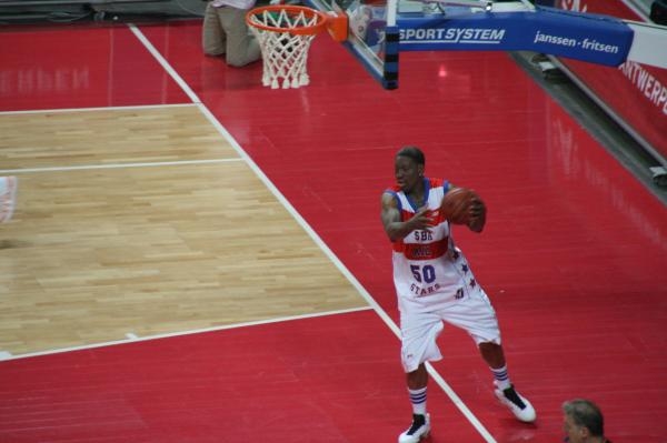 Tijdens de wedstrijd(103-126 voor de bezoekers uit 'Amerika')had Rodman zich verdienstelijk gemaakt met 4 rebounds en...2 punten en leek zich te conentreren op een nieuw avondje stappen in het Antwerpse(hij was-al-sinds maandag aangekomen in Antwerpen)