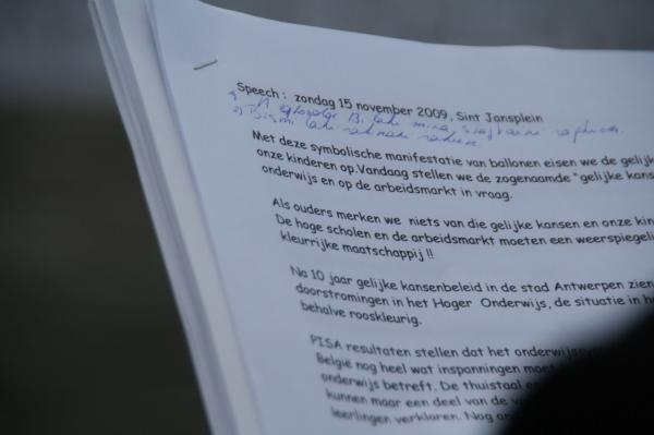"Na 10 jaar gelijke kansenbeleid in de stad Antwerpen zien we nog steeds geen doorstromingen in het Hoger Onderwijs en dan komt er nog eens bij dat het hele gelijke kansbeleid word stilgelegd door Minister van Onderwijs.Ouders en leerkrachten zijn hier niet mee gediend" zei ze nog.