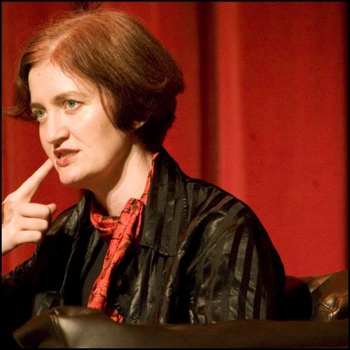 Emma Donoghue (Ierse) stelt in de theaterzaal haar nieuwe boek 'Landen' voor. Het boek neemt je mee in de gevoelens en gedachten rond lange afstandsrelaties.