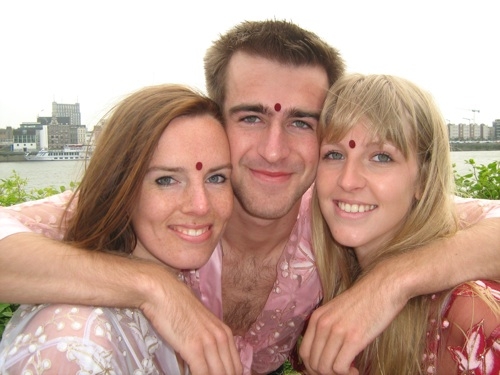 Om onze docu compleet te maken, hadden we het idee om, geheel in de stijl van Bollywood en ook als knipoog naar de laatste scene uit Slumdog Millionaire, de film af te sluiten met een Bollywooddans. We hadden inmiddels tijdens een Bollywooddansles een aantal ideetjes opgedaan. Zo gezegd, zo gedaan. Compleet met rode stip op ons voorhoofd en gekleurde kostuums trokken we met z’n drieën naar Linkeroever om daar, met een mooi zicht op de stad, onze Bollywooddans op te nemen. Tot grote hilariteit overigens van onze cameraman en van onszelf.