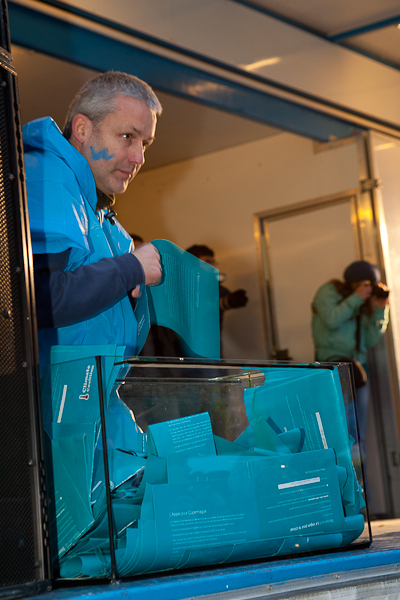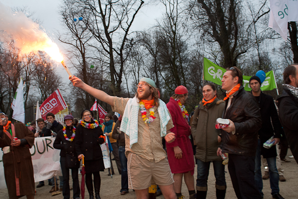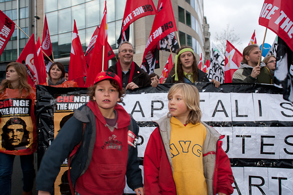BRUSSEL -- Op zondag 5 december kwamen 15.000 betogers op straat in de Europese wijk in Brussel om een bindend klimaatakkoord te vragen op de aanstaande klimaattop in Kopenhagen.