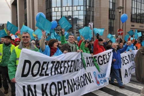 Brussel -- In Brussel kwamen zaterdag 15000 mensen op straat om van de wereldleiders in Kopenhagen krachtige maatregelen te eisen tegen de opwarming van het Klimaat.