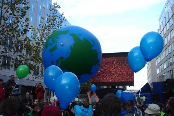 Les manifestants ont défilé dans le quartier européen et ont symboliquement encerclé le siège de la Commission européenne dans le but de rappeler aux négociateurs de tous les Etats européens qu’il est impératif que des engagements fermes soient pris pour enrayer le réchauffement climatique.