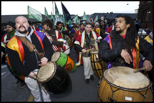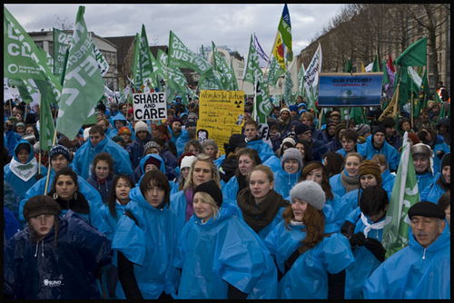 Vandaag, 10h00, vroeg voor vele activisten, startte de flood actie door "Friends of the earth". De aanvankelijk kleine groep activisten groeide snel uit naar een heuse 'flood for Climate Justice' demonstratie. Verschillende geïnterviewden, onder ander uit Belgie, Nederland, Uruguay en Duitsland hadden duidelijk een éénduidig boodschap. No offsettng ! CO2 is geen handelswaar en handelen in C02 is geen 'greenhouse' actie.