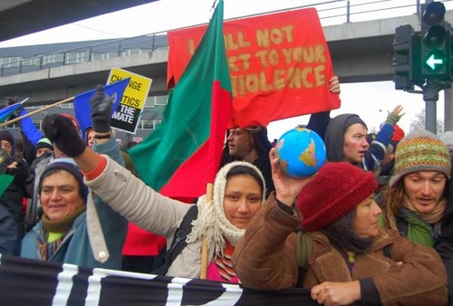 Onder het motto 'Reclaim Power' stapten een groep manifestanten deze woensdag 16 december richting Bella center in Kopenhagen. Niet toevallig één dag voor vele staatshoofden hier de besprekingen komen bijwonen. Organisaties als Climate Justice Now en Climate Justice Action wilden op deze manier hun eis voor een rechtvaardig klimaatplan kracht bijzetten. Het was de bedoeling het Bella Center binnen te dringen om er samen met andere NGO leden een volksvergadering te houden. Slechts enkelingen slaagden daar ook effectief in. De meerderheid van de betogers botste tegen een harde vuist, knuppel of straal pepperspray voor ze hun doelwit konden bereiken.