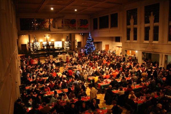 Op kerstavond ging in de Sint-Walburgiskerk,in de...Volkstraat,een groot kerstmaal door met zo'n 600-tal! armen en daklozen uit heel Antwerpen.