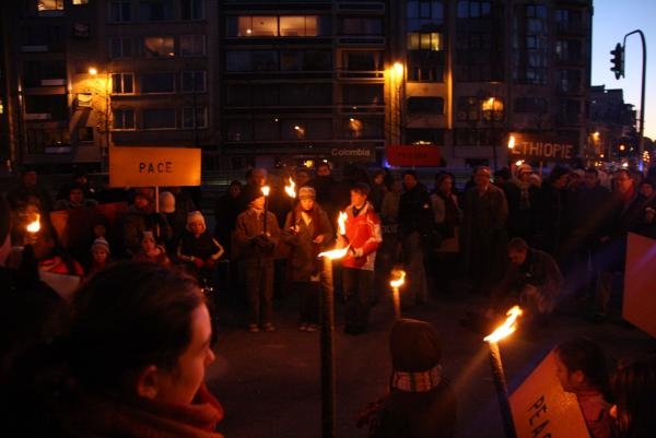Antwerpen:Jaarlijkse Fakkelwandeling voor de Vrede op Aarde op 1 januari.