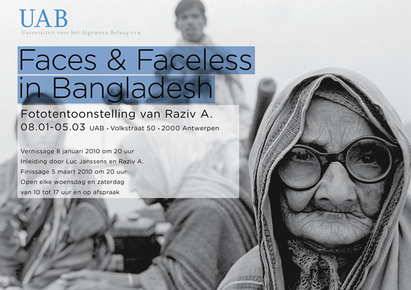 Vrijdag pakte de Universiteit voor het Algemeen Belang uit met de vernissage van Raziv A.’s fototentoonstelling ‘Faces and Faceless in Bangladesh.’ De tentoonstelling bestaat uit 40 portretten die een deel van de bevolking in zijn geboortedorp in Bangladesh een gezicht geeft. Raziv A. is vorig jaar naar België geimmigreerd.
