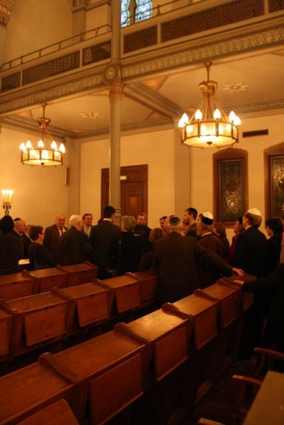 Er waren maar een twintigtal genodigden aanwezig voor deze rondleiding in de synagoge.