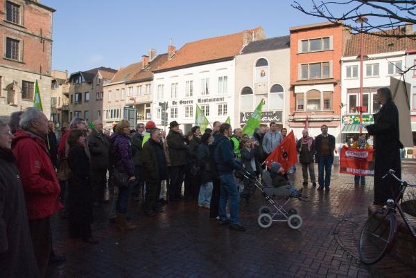 Onder de delegaties van Groen!, SP.a en PVDA waren onder andere Bart Caron, Philippe Decoene en burgemeester Gilbert Bossuyt aanwezig. Ook schrijvers Willy Spillebeen en Jozef Deleu, ereburgers van Menen, waren aanwezig.(meer informatie: http://www.mag-menen.be/)"