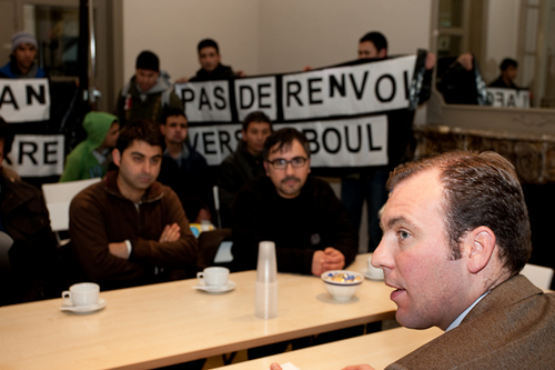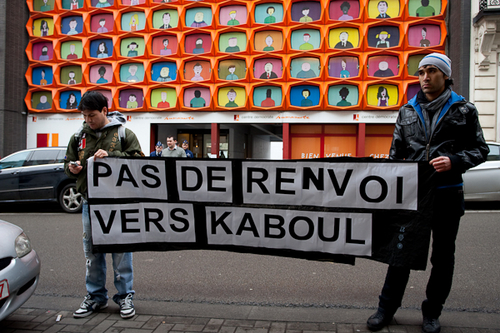 BRUSSEL -- Maandag voerden een twintigtal mensen actie voor het hoofdkwartier van CDH. Ze kloegen aan dat vorig jaar acht Afghaanse vluchtelingen werden teruggestuurd naar Afghanistan, dat toch duidelijk een oorlogsgebied is. Ze vroegen om de opschorting van alle verdere uitwijzingen naar Afghanistan. Een delegatie werd ontvangen door Melchior Wathelet, staatssecretaris voor Migratie en Asielbeleid.
