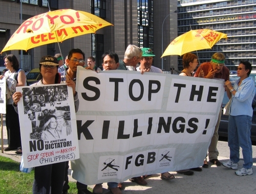 Demonstranten tegen Arroyo: "Stop the killings in the Philippines!"