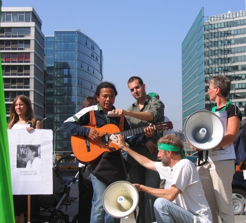 BRUSSEL -- Het bezoek van de Filippijnse presidente Arroyo aan op 12 september ging niet ongemerkt voorbij. Vertegenwoordigers van ngos, vakbondsmilitanten en mensenrechtenactivisten vonden het de ideale gelegenheid om hun bezorgdheid over de mensenrechtensituatie in de Filippijnen kenbaar te maken. Daarbij schoven ze een eenvoudige maar krachtige eis naar voor: "Stop the killings!"