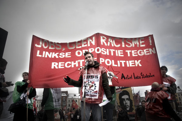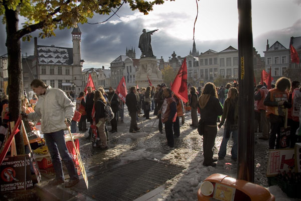 GENT -- Reeds maandenlang voert Blokbuster campagne voor een betoging tegen het economisch congres van het Vlaams Belang. Ze lanceerden die campagne omwille van het gevoelig karakter van wat het Vlaams Belang op het congres zou bespreken. We waren verheugd dat het belang van deze anti-fascistische mobilisatie door bredere kringen werd erkend. ABVV, ACV, Blokwatch, COMAC, Attac, en vele anderen steunden de betoging en riepen op om mee te betogen in Gent.