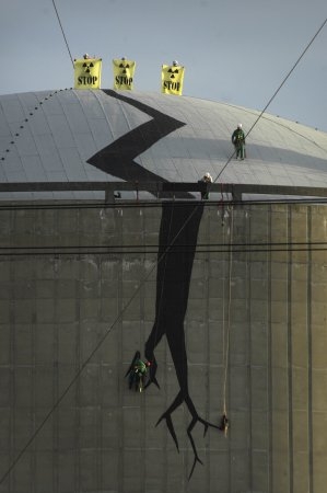 "Met deze actie wil Greenpeace de veroudering van de Belgische kerncentrales en de veiligheidsproblemen die dat met zich meebrengt, aanklagen (1). Deze actie volgt op het protest van maandag aan de steenkoolcentrale van Ruien. Met de acties wil Greenpeace de politieke verantwoordelijken aanzetten tot een propere elektriciteitsproductie en vraagt ze steenkool en kernenergie de rug toe te keren. Het is perfect mogelijk de vervuilende elektriciteitsvoorziening achterwege te laten door te investeren in meer energie-efficiëntie en de elektriciteitsproductie te heroriënteren naar hernieuwbare energie zoals biomassa, zon en windkracht. De politieke verantwoordelijken hebben het blijkbaar nog niet begrepen. Een analyse van de centrales voor elektriciteitsproductie die tegen 2010 operationeel zullen zijn, toont aan dat de drie oudste kerncentrales in werkelijkheid al tegen 2010 vervangen zullen zijn. Door in kernenergie te blijven investeren, worden alternatieven afgeremd.