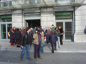 Scientology is maandag 6/11 om 5u. de (door 160 daklozen en slecht behuisden) bezette gebouwen, waarvan ze eigenaar is, binnengevallen met een Italiaanse delegatie van rond de 100 man sterk en slotenmakers, privé security + hond op de Waterloose steenweg in Brussel om zogezegd lichte renovatiewerken te beginnen.