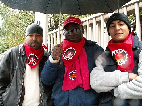 Mohamed, Augusto en Kamal (vlnr) werken voor een onderaannemingsbedrijf vlakbij en zijn alledrie delegee.