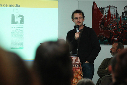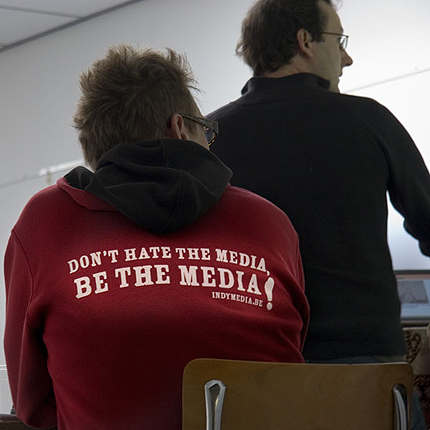 BRUSSEL -- Een kleine 100 nieuwsgierigen kwam zondag een kijkje nemen achter de schermen van Indymedia.be. De correspondenten, videasten en fotografen van de website stelden er hun werk voor. Er waren verschillende workshops waarin je leerde publiceren op de site of waarin videofilmpjes van Indymedia.be besproken werden. Professor Jan Blommaert zorgde voor de kritische noot.