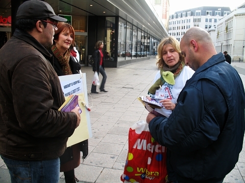De actievoerders zijn vrijdag en zaterdag te vinden in 17 steden. In winkelstraten stellen ze een infostand op en met straatanimaties trekken ze de aandacht van de voorbijgangers. In Brussel kan je de infostand vinden in de Nieuwstraat.