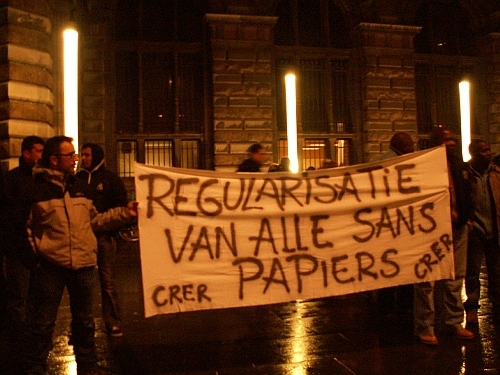 Antwerpen -- Donderderdagavond organiseerde Antwaars Asiel samen met UDEP en VAKA/ Hand in Hand een fakkeltocht voor de mensen zonder papieren. Met de fakkeltocht roepen ze op om dringend werk te maken van duidelijke en doorzichtige regularisatiecriteria.