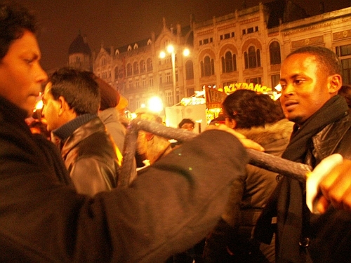 Rond 18u verzamelden enkele honderen mensen aan het Antwerps Centraal Station. Daarna trok de fakkeltocht richting kathedraal waar UDEP een kleine toesprak gaf. Twee meisjes zonder papieren lazen ook hun nieuwsjaarswensen voor. Ze wezen op hun onzekere situatie en de voortdurende angst waarmee ze zitten om op een dag opgepakt en teruggestuurd te worden.