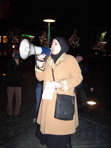Op 15 januari vormden enkele honderden vrouwen een ketting op de Groenplaats om te protesteren tegen het hoofddoekenverbod.