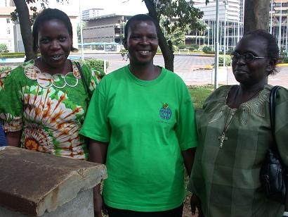 Ik ontmoet deze dames aan het Kenyatta International Conference Centre (KICC), in het centrum van Nairobi. Hier kunnen de mensen die willen deelnemen aan het WSF zich aanbieden… en betalen.