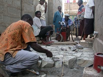 "De ‘badkamer’ is een manier om aan geld te komen. Wekelijks samen sparen is niet genoeg. Daarom hebben we als groep 93.000 Schilling (zo’n 1200 euro) geïnvesteerd in de bouw van deze badkamer, die tegelijk nuttig is en inkomsten genereert. Want Kambi-Moto heeft geen stromend water. In de badkamer kunnen de bewoners voor vijf Schilling een douche komen nemen, en voor twee Schilling 20 liter water aftappen. Maar echte winst halen we vooral uit onze Carwash voor vrachtwagens en minibusjes. Daarmee zijn we nu 24 nieuwe huizen aan het bouwen"