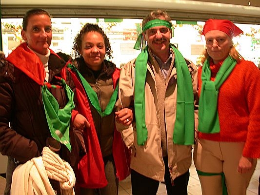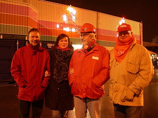 Rita (tweede van links) werkt al 34 jaar voltijds in de Makro. "Ik sta hier uit solidariteit met mijn collega´s. We protesteren tegen het generatiepact. Het pact is slecht voor halftijdswerkende vrouwen."