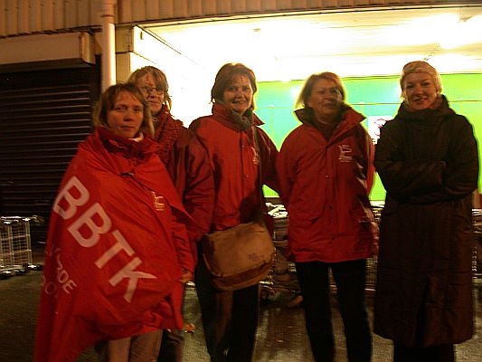 Kristel Bouwens (links met paarse sjaal) werkt al bijna 15jaar deeltijds in super GB bist. "Ik sta hier vandaag omdat deeltijdsen bijna geen rechten meer hebben voor brugpensioen. Ik wil niet werken tot ik in mijn kist kruip. Of de overheid naar ons gaat luisteren weten we niet maar we hopen toch van wel."