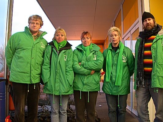 Danny (links) werkt al 13 jaar bij de Makro. "Ik ben begonnen als parttime maar werk nu fulltime. Ik sta hier uit solidariteit met mijn collega´s. Al diegenen die nu beginnen krijgen allemaal een parttime contract. Het zijn voornamelijk vrouwen. En ik sta hier ook om te pleiten voor vervanging bij tijdskrediet"