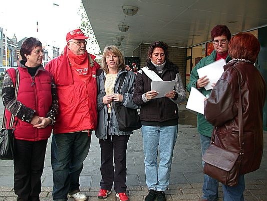 Antwerpen -- De vakbonden van de distributiesector BBTK en LBC. hielden vandaag een 24-urenstaking om te protesteren tegen het Generatiepact. Het Pact is heel nadelig voor de deeltijdse werknemers. Deze groep omvat grotendeels vrouwen. Voor hen wordt het haast onmogelijk om nog op brugpensioen te gaan. Indymedia ging een kijkje nemen in Antwerpen.