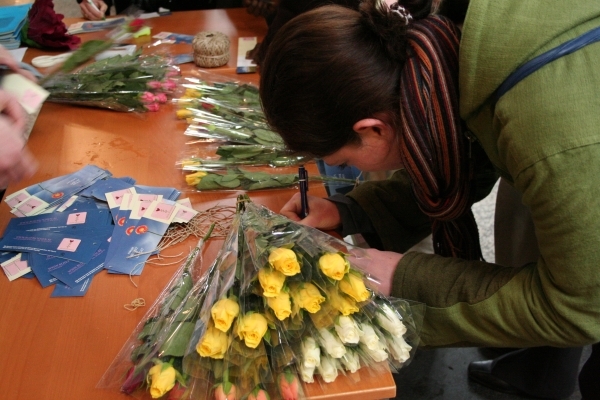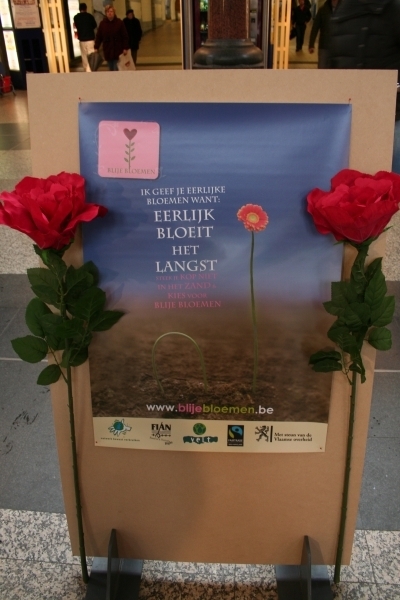 Tussen 11u en 13u worden in de inkomsthal van station Gent Sint Pieters liefdesboodschappen van voorbijgangers verzameld op een groot hart. De campagnepartners delen in ruil 500 rozen-met-een-hart uit. Die rozen met Max Havelaar keurmerk zijn geproduceerd op plantages in Kenia met respect voor mensenrechten en milieu.