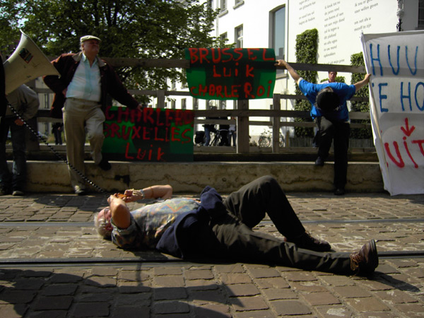 Jean Peeters een priester uit Brussel die reeds jaren voor de daklozen vecht, ging in Antwerpen op de tramsporen liggen uit protest omdat Monica De Coninck de delegatie van daklozen niet persoonlijk wenste te ontvangen!