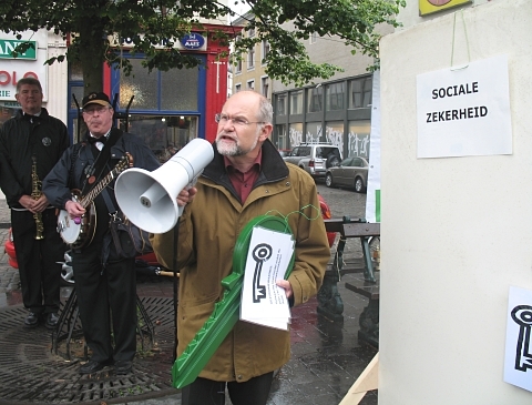 Op het plein stonden acht deuren opgesteld. Gesloten deuren die symbool staan voor de verschillende terreinen waarop mensen op uitsluiting botsen. Zo wil het ACW dat er meer sociale woningen komen en dat ook de private verhuurdersmarkt meer gestimuleerd wordt om kwaliteitsvolle woningen te verhuren aan mensen met een klein inkomen. De sociale zekerheid moet volgens het ACW meer middelen krijgen uit alle inkomens, niet alleen uit arbeid. “Er moet een goede basisvoorziening zijn met degelijke wettelijke pensioenen voor de mensen die niet de middelen hebben om zich tot allerlei aanvullende verzekeringen te wenden,” zegt ACW-voorziiter Jan Renders. De pensioenen moeten net als de andere uitkeringen ook gelijke tred houden met de stijging van de welvaart, aldus het ACW.