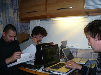 Het is al laat. Ik doe nog een poging om in de mediatent de video van gisteren nog eens op te laden. Inez van Vredesactie was er ook aan het bloggen geslagen op indymedia. Enkele uren later tevergeefs, ik krijg de video niet opgeladen. Morgen dan maar op zoek gaan naar een internetcafé.