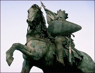 Godfried van Bouillon, leider van de eerste kruistocht, ‘Eerste Koning van Jeruzalem’ (zoals het op het beeld staat), past inderdaad perfect bij de Brusselse campagne van het VB - wat ik in een vorige blogpost ´de beschavingsoorlog van het VB’ noemde.